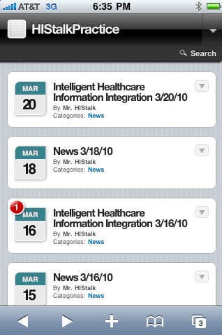 From Mobile Man “Re: mobile format. Nice new mobile phone format for HIStalkPractice! Thanks.” You’re welcome and thanks to Mr. H for setting it up. If you have a smartphone, give it a try. It loads fast and looks mighty pretty.