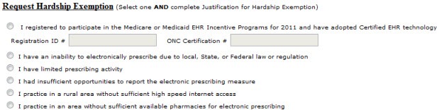 From Lauren Alaina: “Re: exemption from 2012 eRx penalties. Providers can access the exemption request form at www.qualitynet.org/pqrs. In the ‘Related Links’ box on the upper left, click on ‘Communication Support Page,’ which displays the online form. Once a provider finds the site, the process seems pretty straightforward!” Thanks, Lauren. Apparently the portal just went live last week. It looks like it will take providers about a minute to file an exemption.
